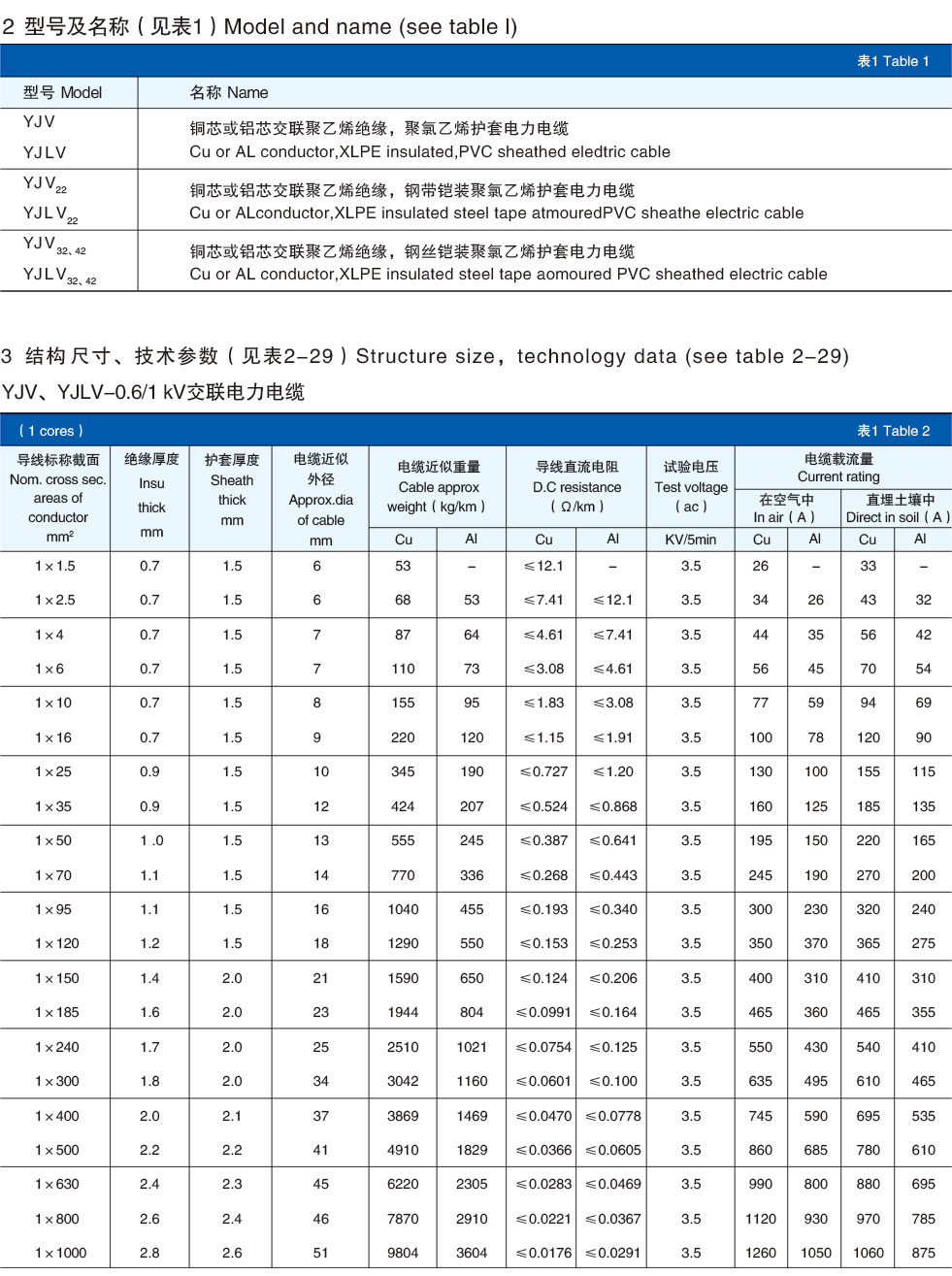 XLPE Insulated Electric Cable(GB/T12706-2008)