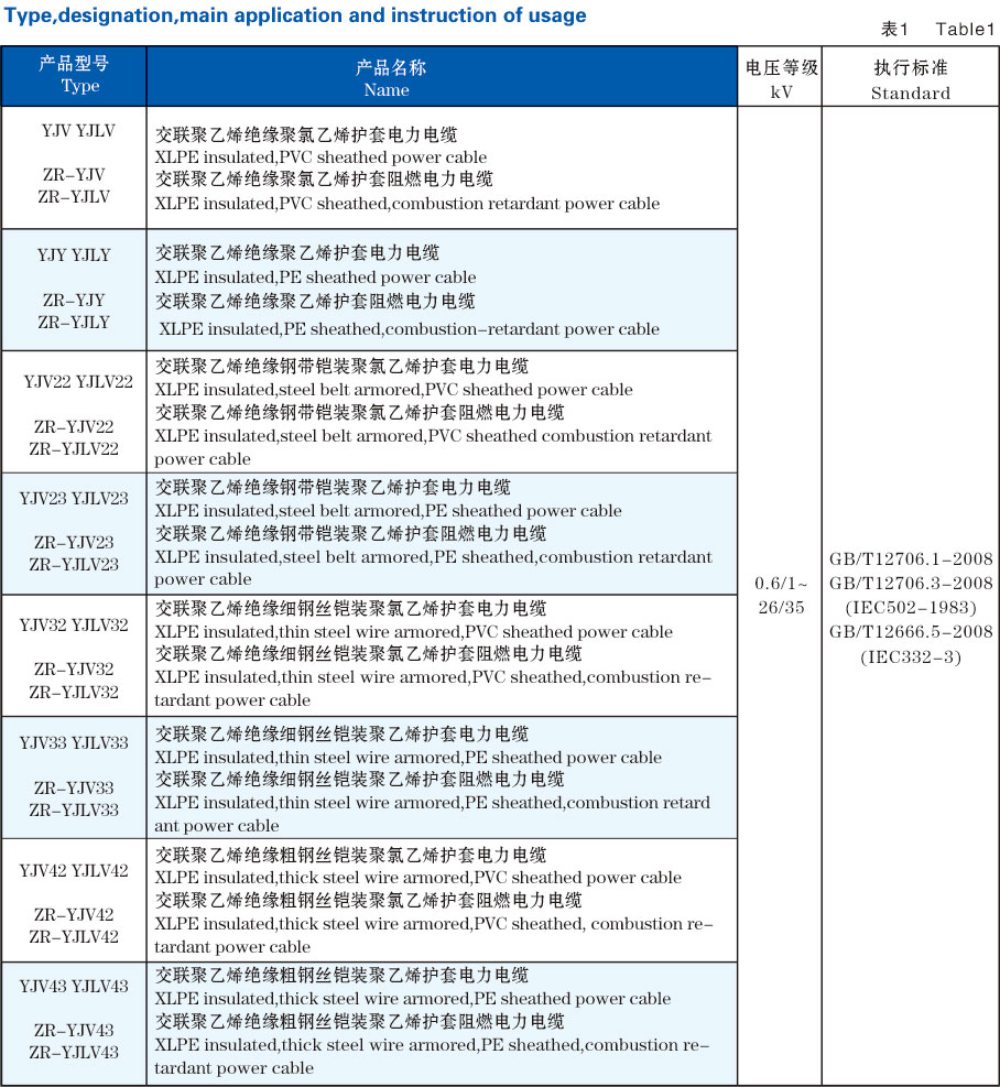 The conductor XLPE insulated power cable is produced through chemical or physical methods so that the product is considerably improved in its mechanical performance,thermo-ageing performance and adaptablity,and bears fine electrical performance.It possesses such unique characteristics as the conductor’s high temperature in operation,simple in structure,small in outer diameter,light in weight, convenient in use and free from the restriction of level difference of installation.It is fit for power distribution and transmission network of 6-35kV.