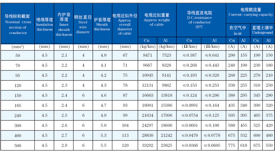 5/Ⅲ 8.7/15kV三芯交聯(lián)聚乙烯絕緣,細鋼絲鎧裝,聚氯乙烯護套電力電纜